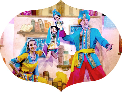 Un viaje al corazón de oriente y la imaginación: A través de una puesta en escena cuidadosamente elaborada, con una estética radiante, humor sutil y una gran creatividad, transformamos el clásico de Las mil y una noches en un espectáculo de títeres que emociona y conecta con toda la familia.